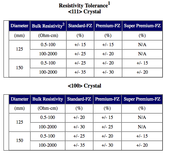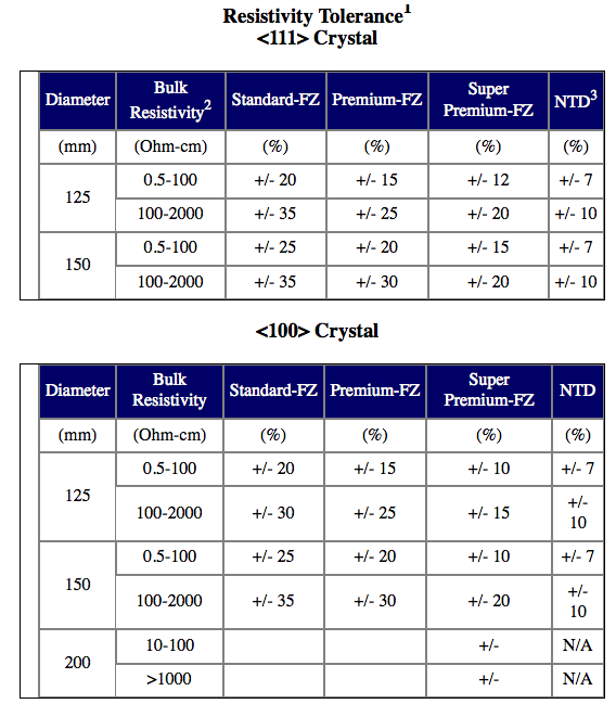 Type/Dopant P Type/Boron , N Type/Phos,  N Type/As, N Type/Sb